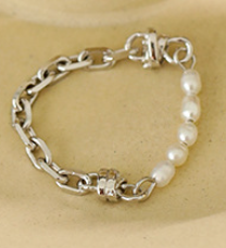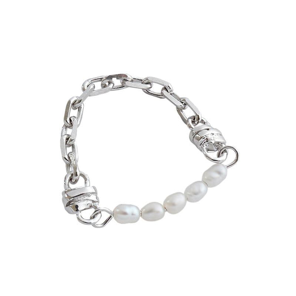 Fashion Natural Pearls Chain 925 Sterling Silver Ring