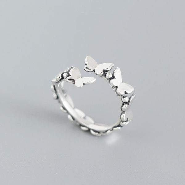 Vintage Mini Flying Butterflies 925 Sterling Silver Adjustable Ring
