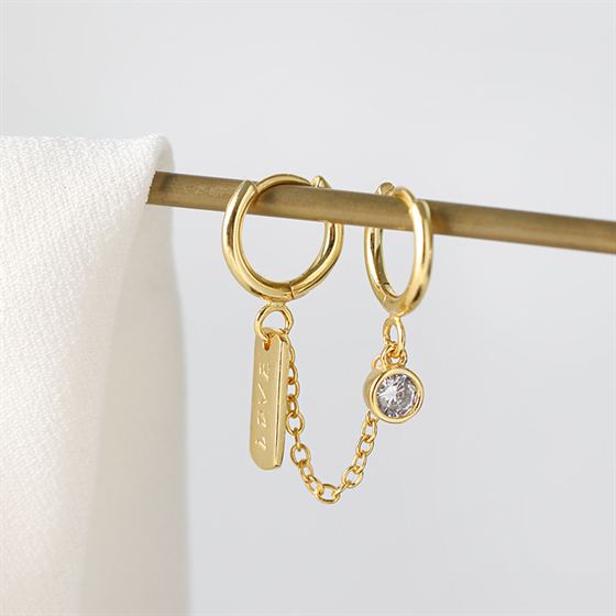 Fashion Doule Hole CZ Love Letters Rectangle 925 Sterling Silver Earring Buckles