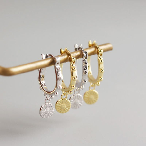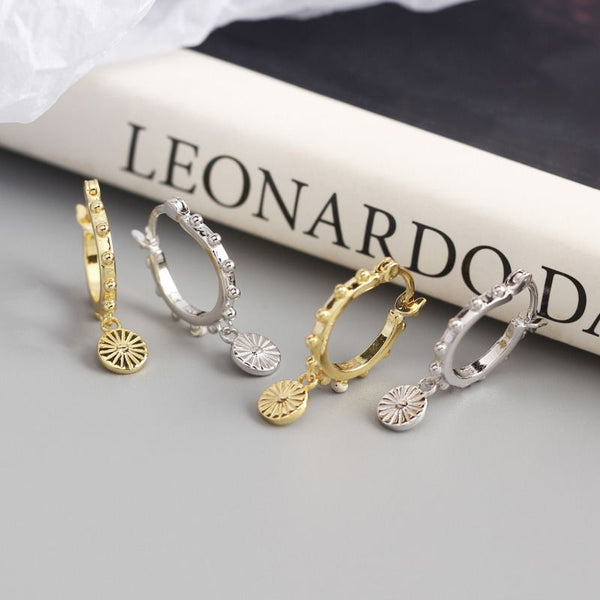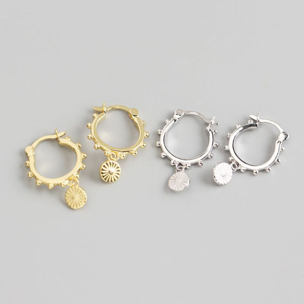 Fashion Beads Round Tag 925 Sterling Silver Hoop Earrings
