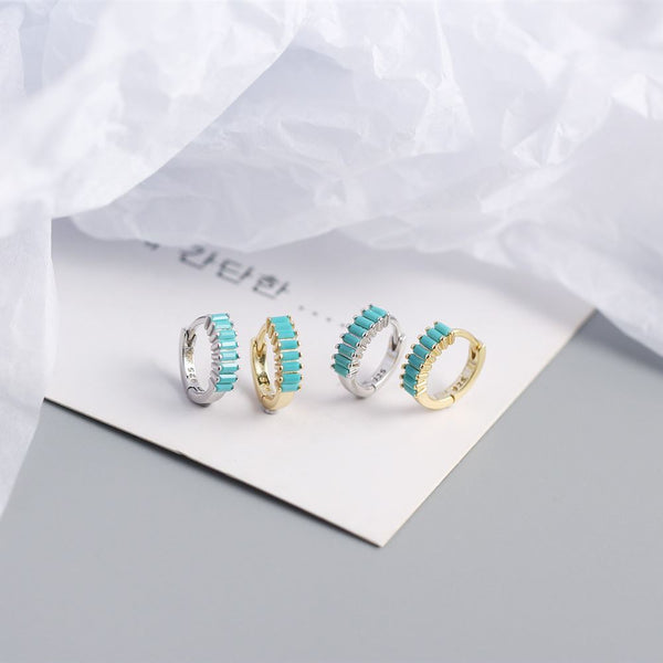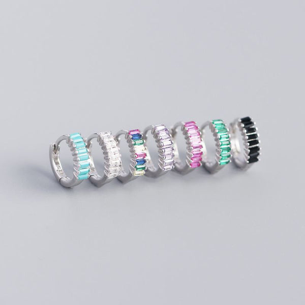 Geometry Rectangle CZ Circle 925 Sterling Silver Hoop Earrings