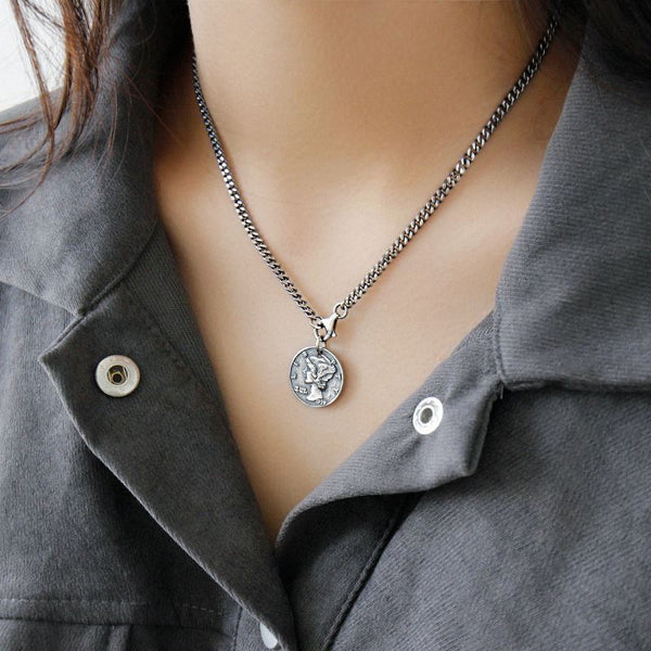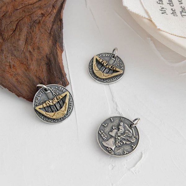 Vintage Lip Portrait Coin 925 Sterling Silver Pendant